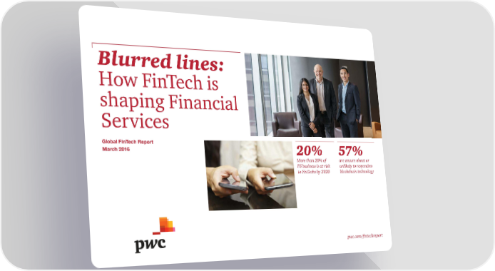 Blurred lines: How FinTech is shaping Financial Services Global FinTech Report March 2016 20% 57% More than 20% of are unsure about or FS business is at risk unlikely to respond to to FinTechs by 2020 blockchain technology pwc.com/fintechreport