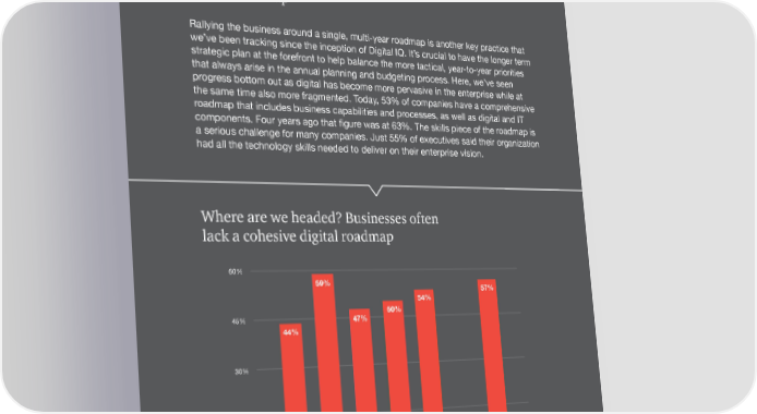 09 Digital roadmap Rallying the business around a single, multi-year roadmap is another key practice that we’ve been tracking since the inception of Digital IQ. It’s crucial to have the longer term strategic plan at the forefront to help balance the more tactical, year-to-year priorities that always arise in the annual planning and budgeting process. Here, we’ve seen progress bottom out as digital has become more pervasive in the enterprise while at the same time also more fragmented. Today, 53% of companies have a comprehensive roadmap that includes business capabilities and processes, as well as digital and IT components. Four years ago that figure was at 63%. The skills piece of the roadmap is a serious challenge for many companies. Just 55% of executives said their organization had all the technology skills needed to deliver on their enterprise vision. Where are we headed? Businesses often lack a cohesive digital roadmap 60% 59% 57% 54% 45% 47% 50% 44% 30% 15% 9% 0% Africa Asia Central and Western Latin Middle East North Eastern Europe America America Europe ® Source: PwC, 2015 Global Digital IQ Survey; Base: 1,988 Q: To what extent do you agree with the following statements about your operating model? We have a single, multi-year digital enterprise roadmap that includes business capabilities and processes as well as digital and IT components. ® 2015 Global Digital IQ Survey 20